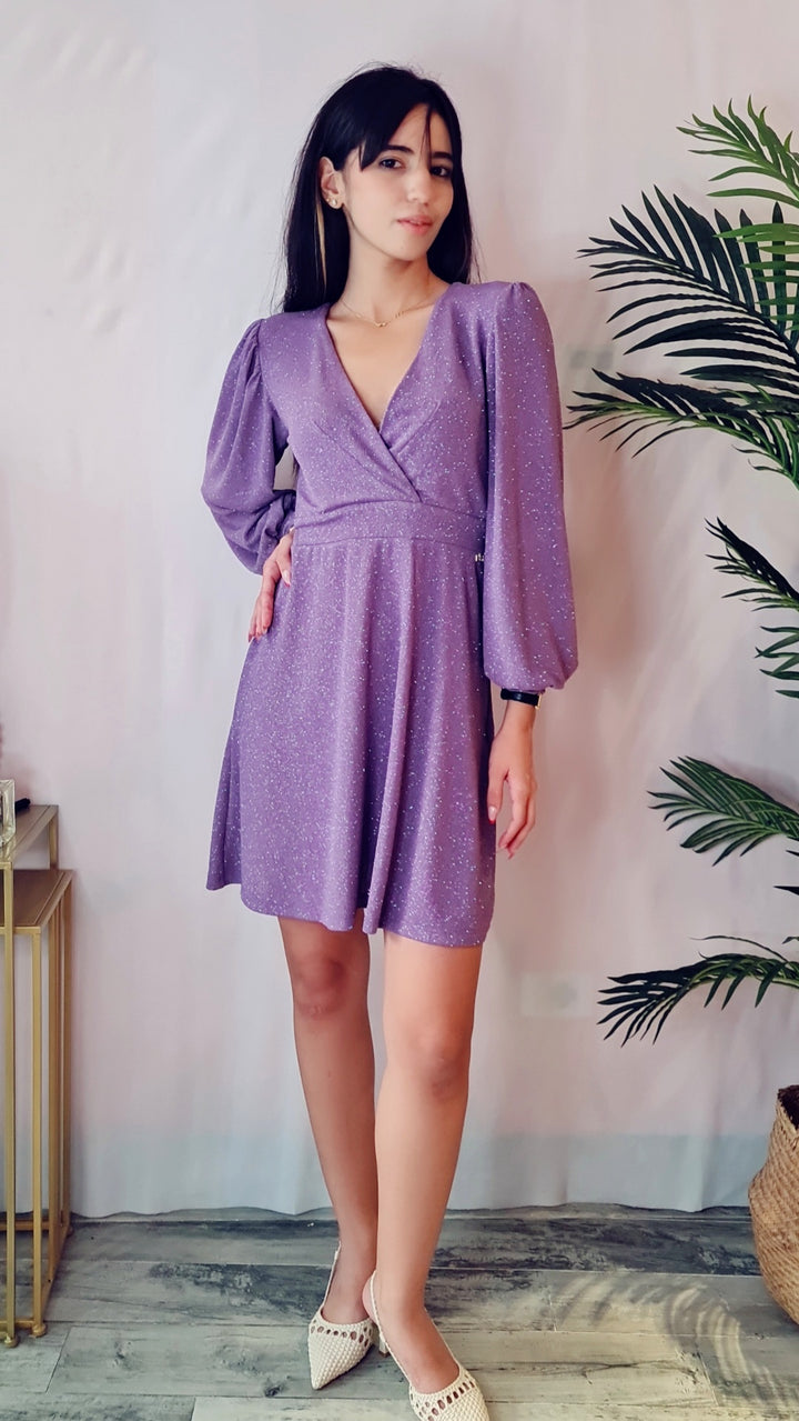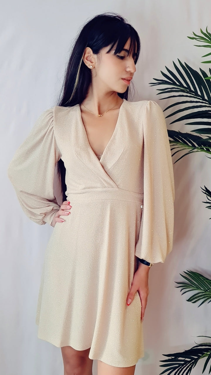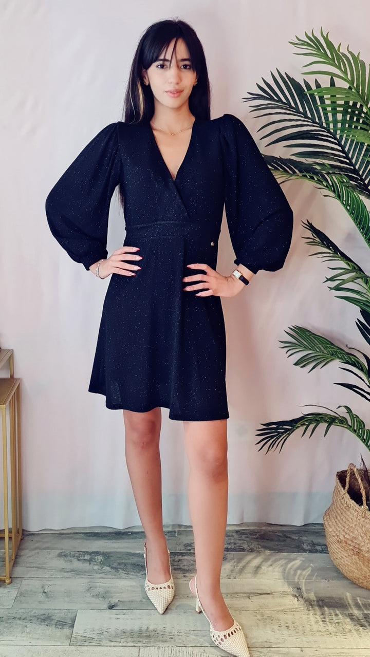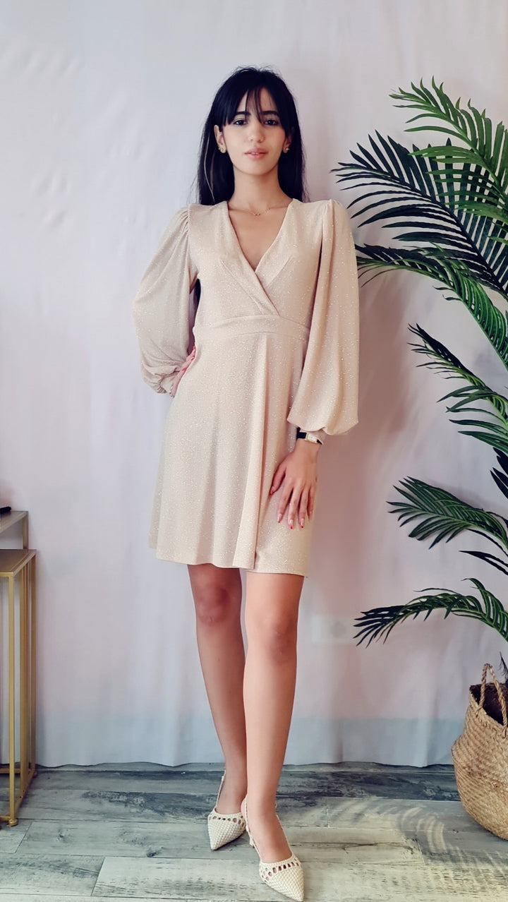 Abito polvere di stelle , gonna morbida non aderente al corpo effetto svasato sul fianco .