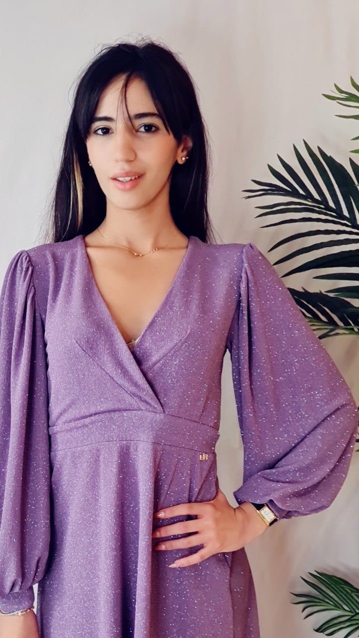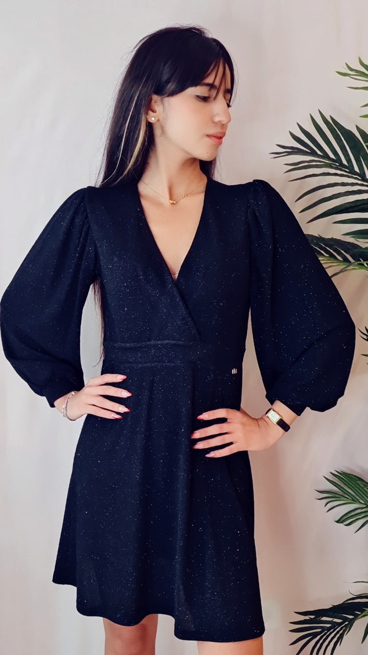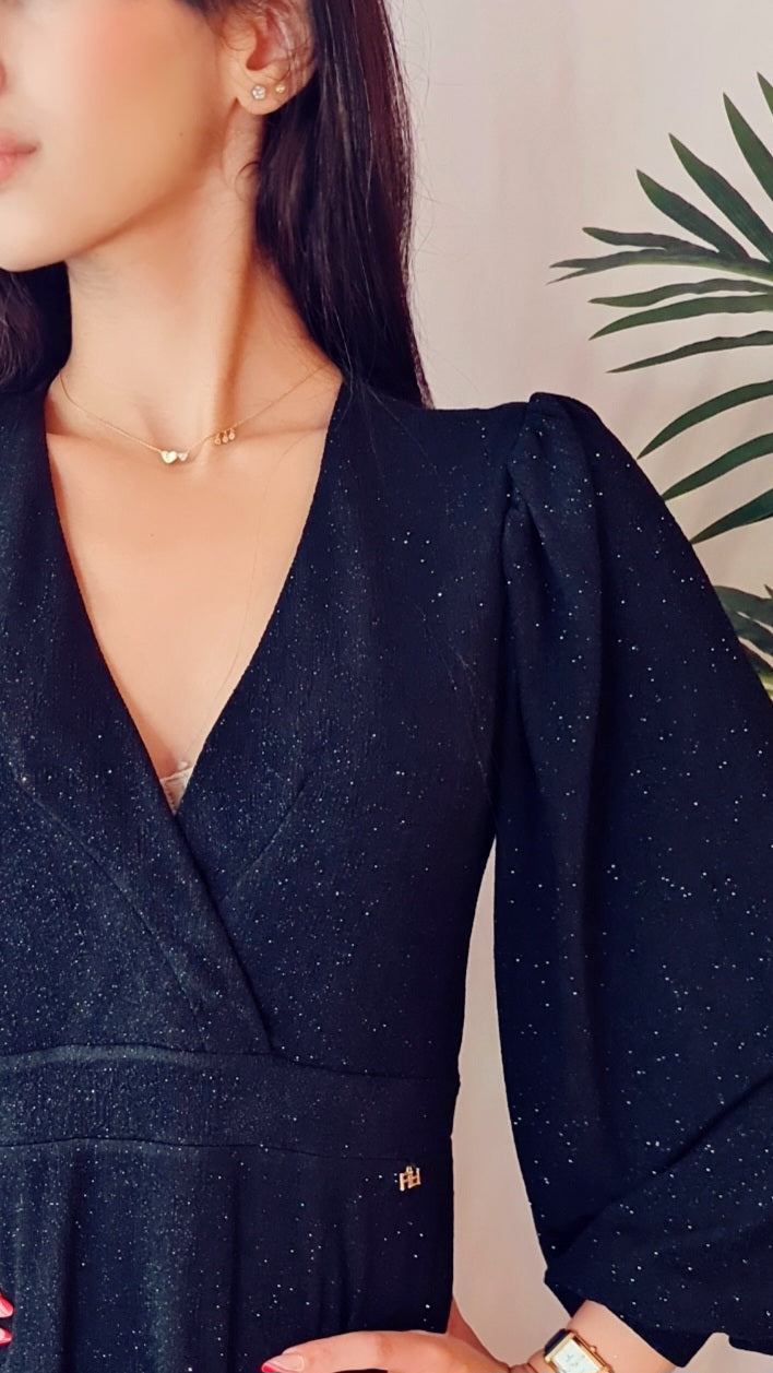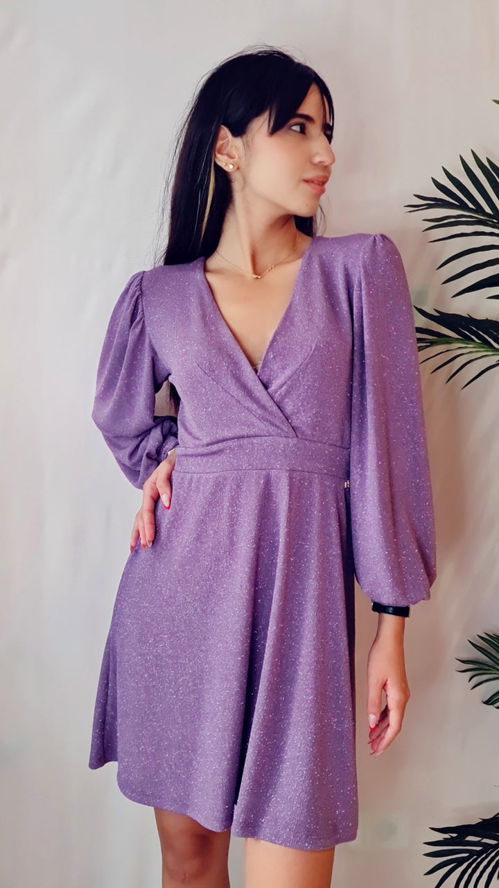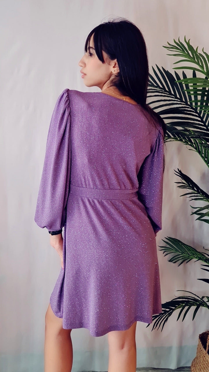 Abito polvere di stelle , gonna morbida non aderente al corpo effetto svasato sul fianco .