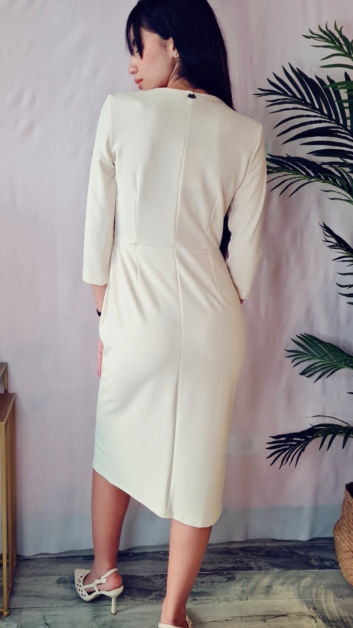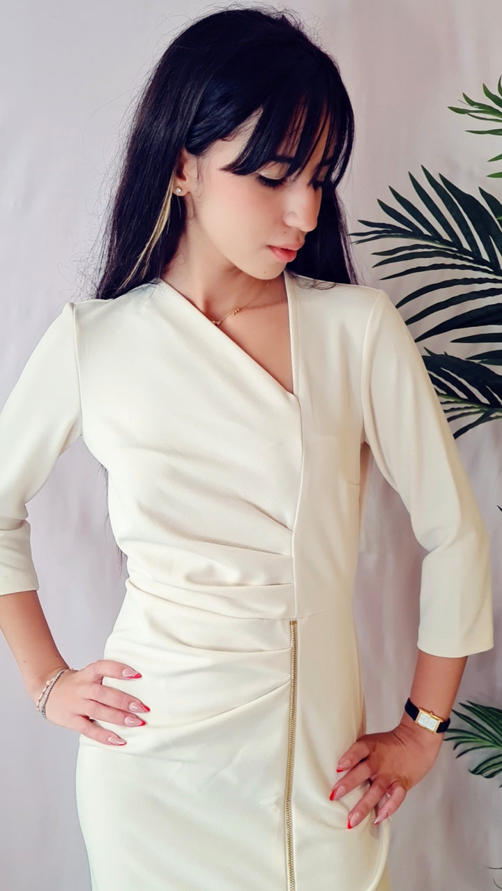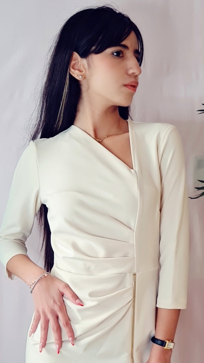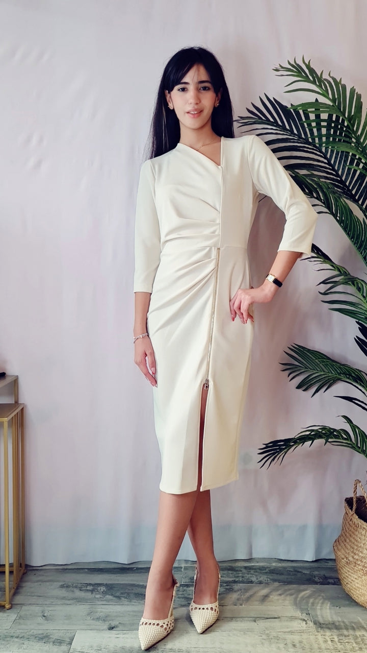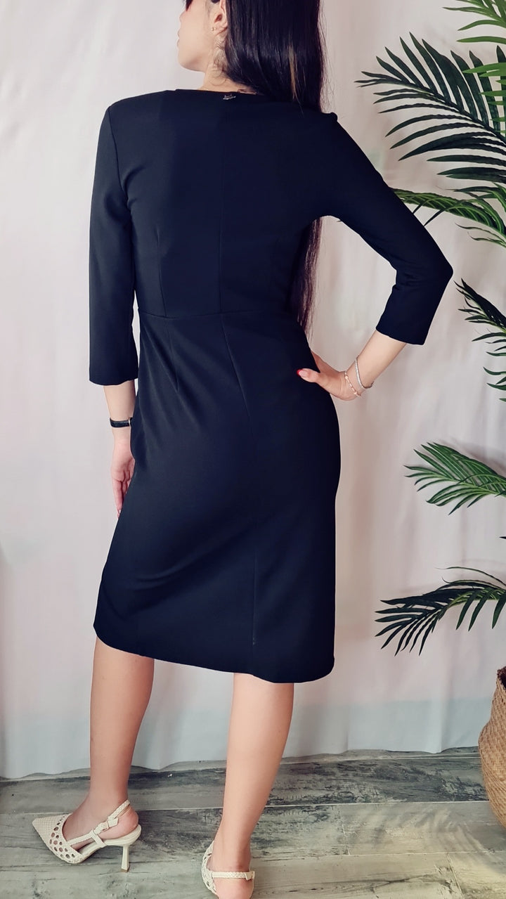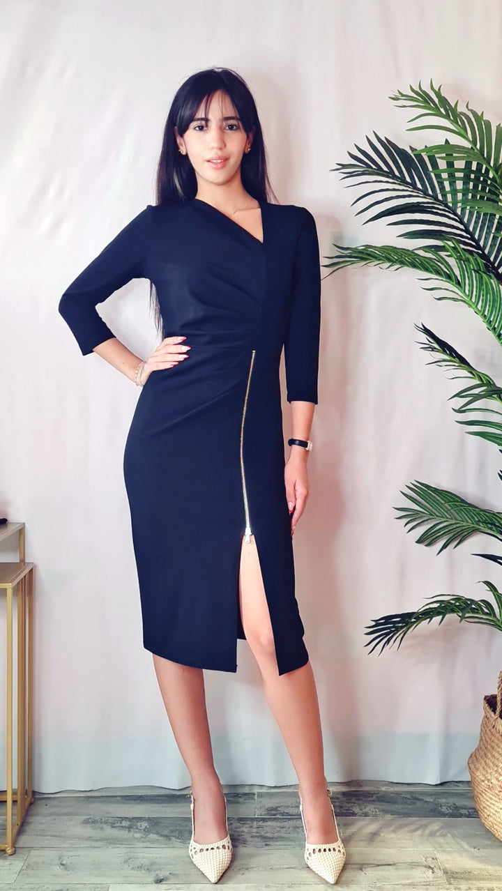 Abito con zip laterale e drappeggio che nasconde le imperfezioni della "pancetta" e sfina la figura .