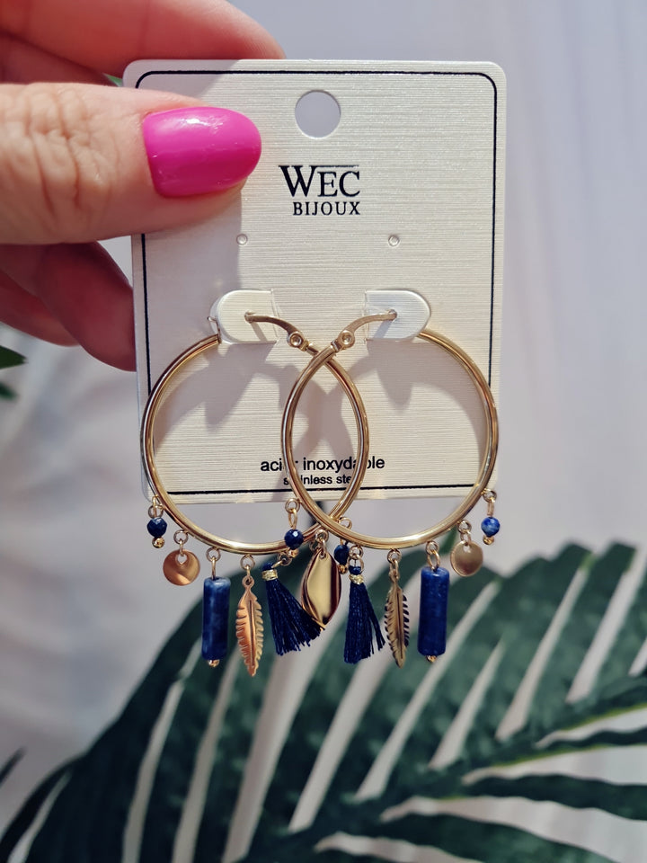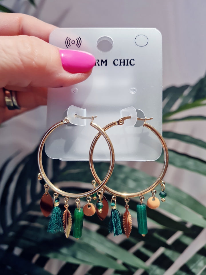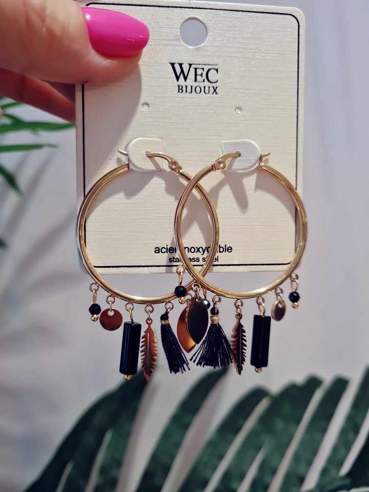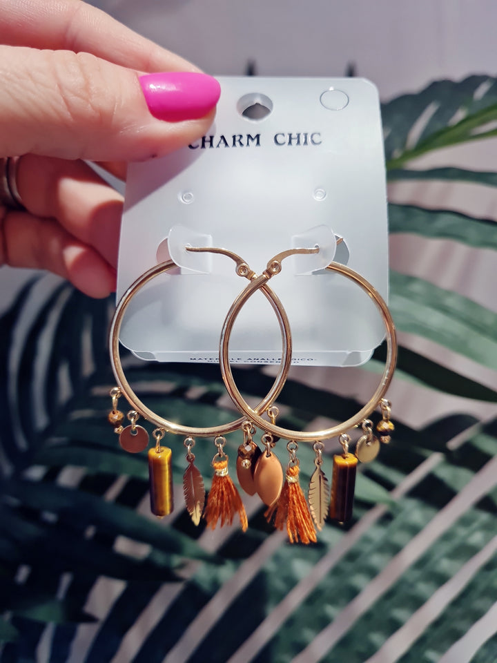 Orecchino a cerchio con pendenti colorati fantasia esotica .