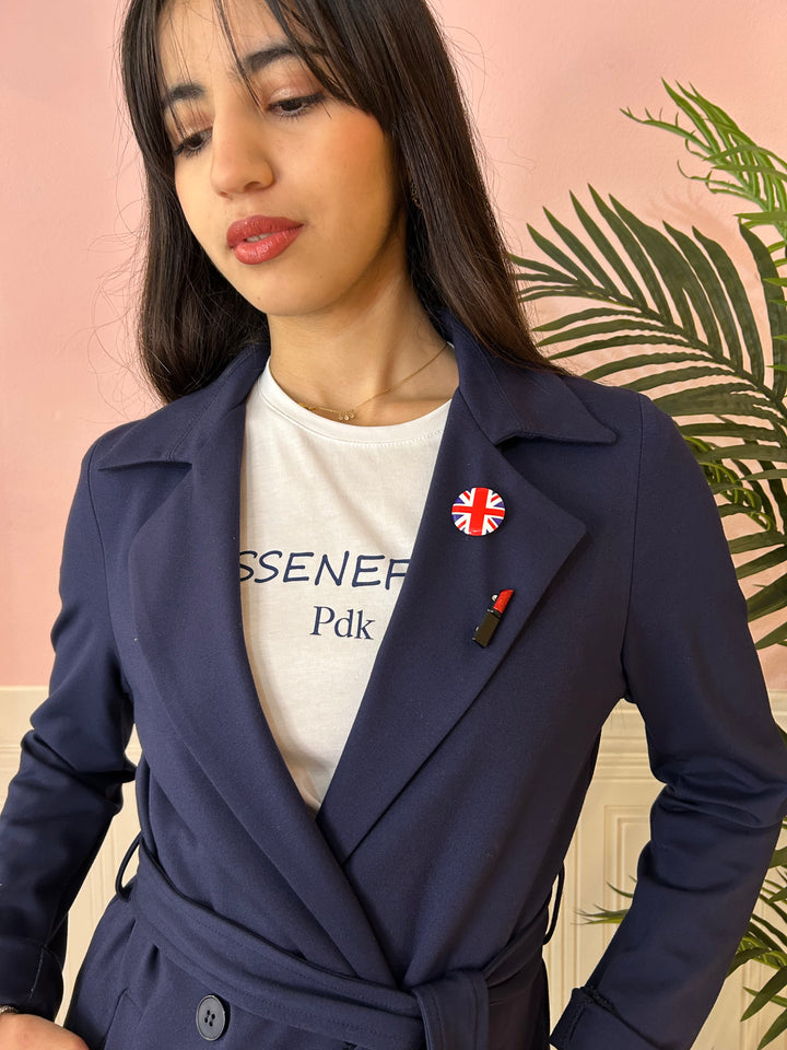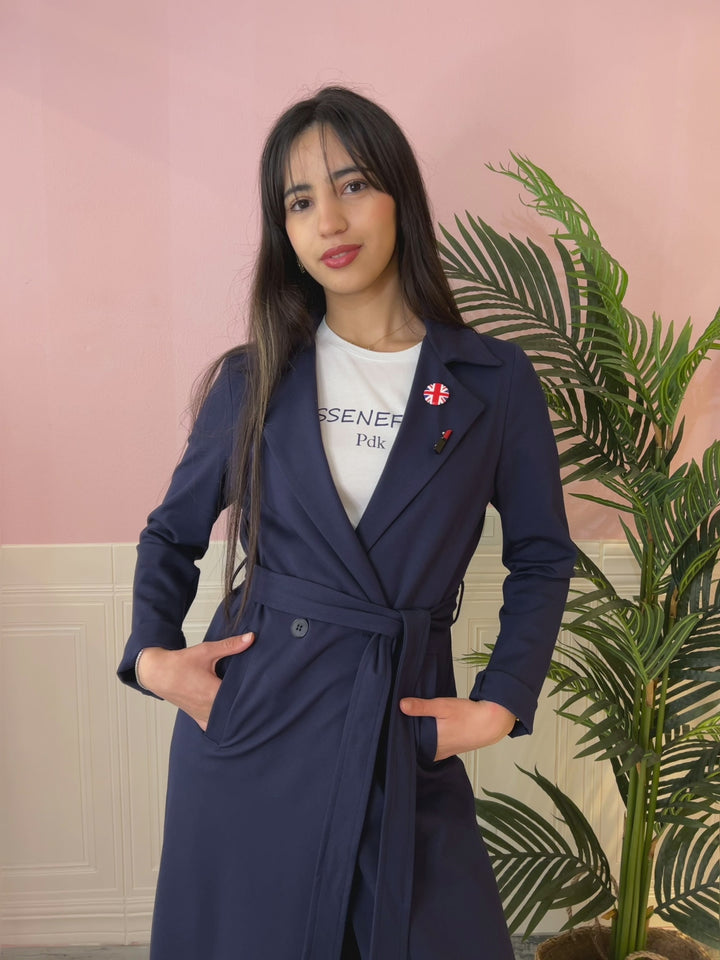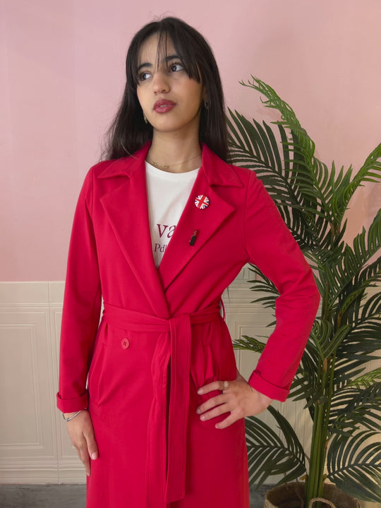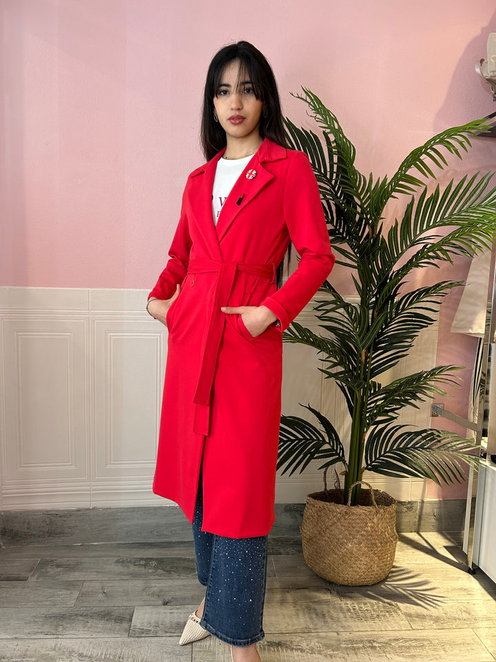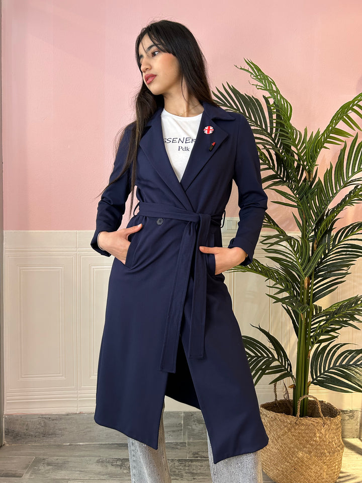 Trench in punto Milano, sfiancato in vita con cintura e tasche laterali Tessuto in cotone elasticizzato.